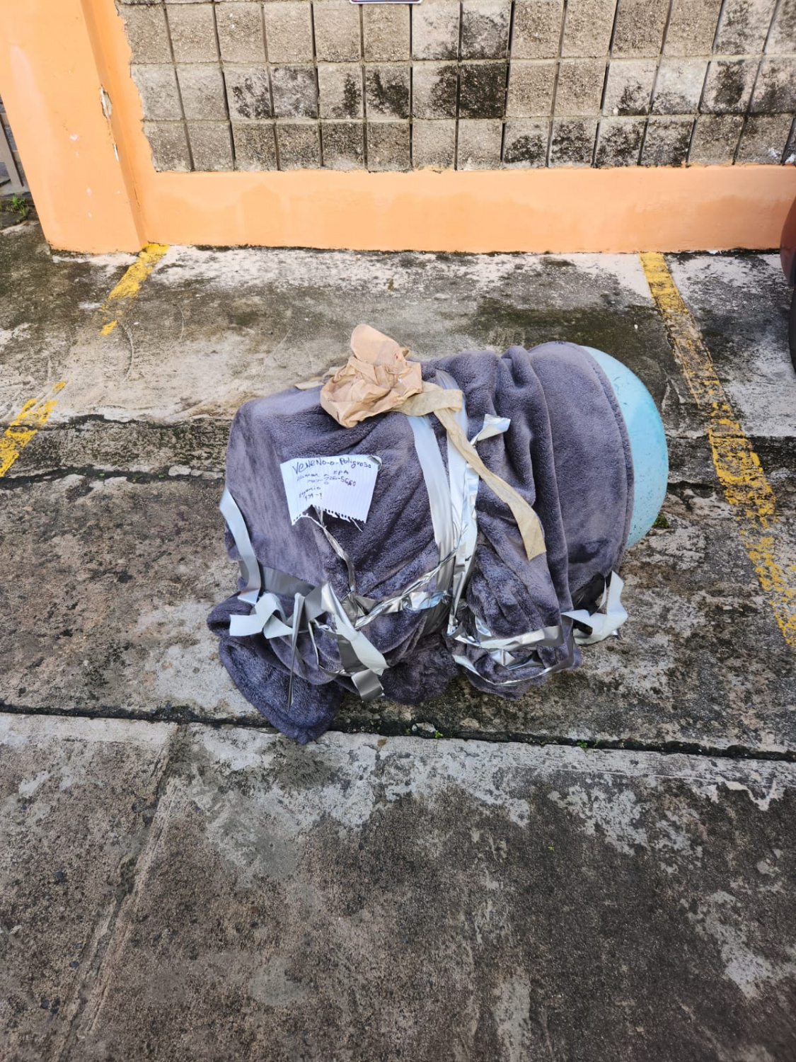 Según el querellante, en dicho lugar encontraron un dron de color azul con una bolsa plástica color negro de basura tapando el mismo con una nota que indicaba "Veneno o peligroso llamar a EPA”.