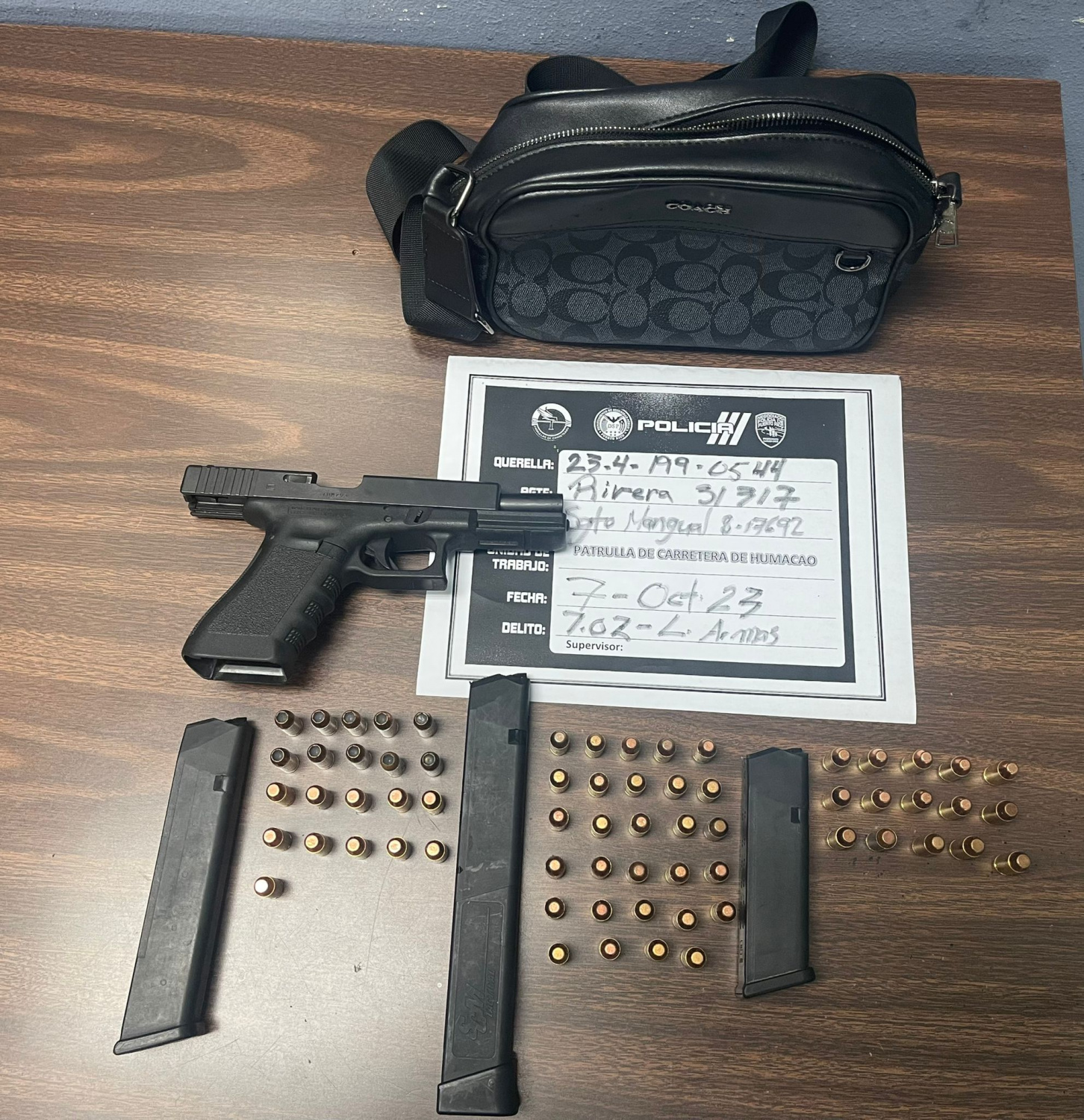 Uno de los arrestos tuvo lugar en la carretera PR-3, cerca del malecón en Naguabo, donde un hombre de 32 años, residente de la zona, fue detenido durante una intervención por violación a la Ley 22 de Tránsito (uso de teléfono móvil mientras conduce). Durante la intervención, se le confiscó una pistola Glock calibre .40, tres cargadores y 65 municiones sin licencia. Además, se le realizó la prueba de alcohol, que arrojó un nivel de 0.086% en su organismo. También, se incautó un carrito de golf.