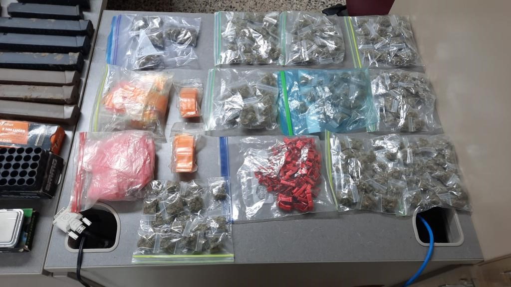 A estos se les ocupo una pistola Glock 22 .40, 1 pistola Glock 19 9mm, una Pistola Rugger 9mm, una pistola Ruger 380 y otra pistola 9mm, 16 cargadores 9mm, 142 municiones del mismo calibre, 9 cargadores .40, 42 municiones del mismo calibre, un Rifle .223 calibre 5.56, 10 cargadores 5.56, y 2 tambores del mismo calibre, 273 municiones calibre 5.56, 209 bolsas de marihuana,159 decks de heroína, parafernalia, 1 radio portátil y $ 979 efectivo.
