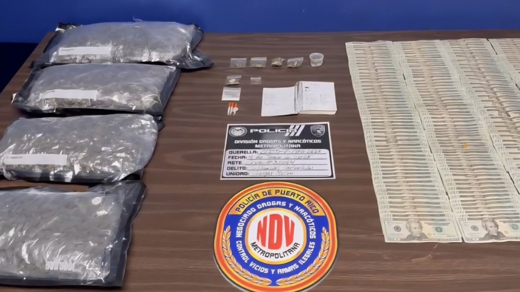 Luego, en otro allanamiento, en la calle Gilberto Monroig intersección con calle Juncos, en Santurce, arrestaron a Christian M. Padilla, 35 años y Maike Fermín Marte, 20 años con 43 copos con marihuana, dos bolsas con la misma droga, 11 cápsulas con crack, siete decks con heroína, cinco bolsas con cocaína, 76 pastillas no identificadas y $662 en efectivo.