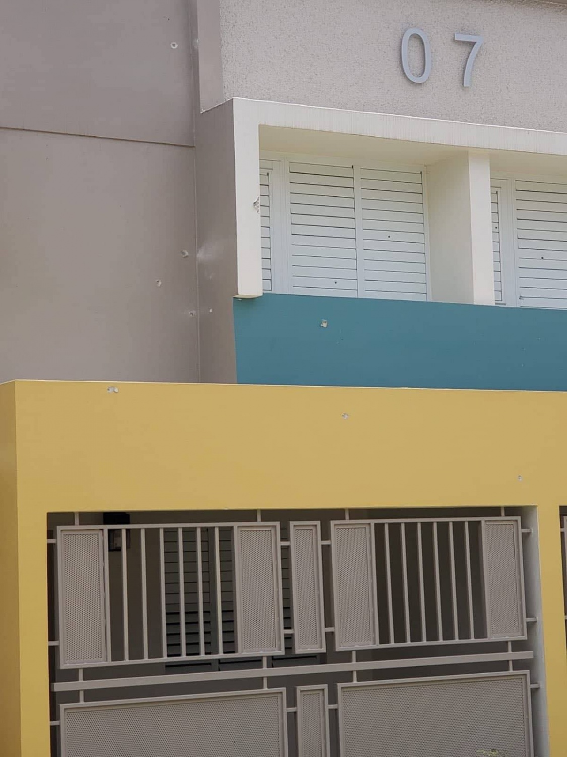 Afortunadamente, los impactos de balas que se ven en las paredes y ventanas del edificio 7 no afectaron a ningún residente, ya que este edificio es de los que fue recientemente remodelado, y está vacío.