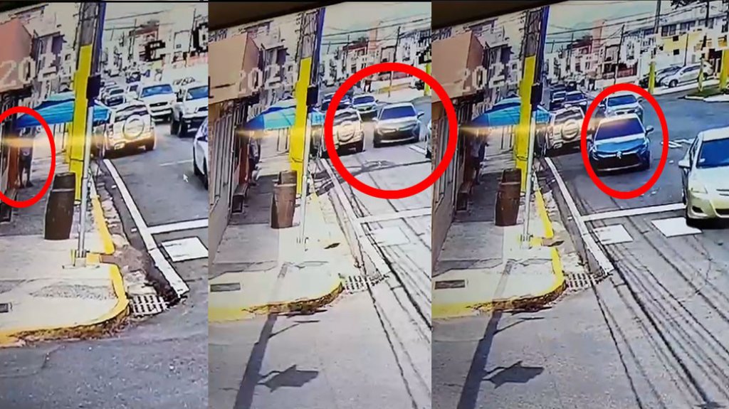 cámaras de seguridad captaron el momento en que un vehículo que se detiene frente al hombre y abre fuego contra este.