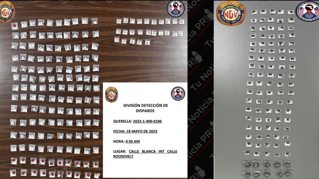 El segundo hallazgo fue en la calle Blanca intersección con la calle Roosevelt de la Barriada Figueroa en San Juan, donde se ocupó un total de 165 bolsitas plásticas de cocaína.