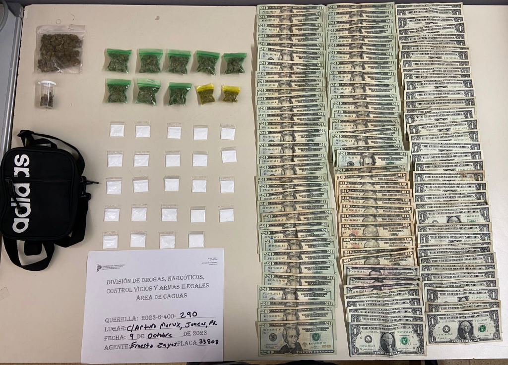 Adicionalmente, se encontraron 23 bolsas de marihuana, 8 cigarrillos de marihuana, 5 copos de marihuana, 2 radios de corta frecuencia y $640 dólares en efectivo en el mismo lugar. Todos los casos serán presentados ante la División de Asuntos Juveniles y la fiscalía de Caguas para los procedimientos legales pertinentes.