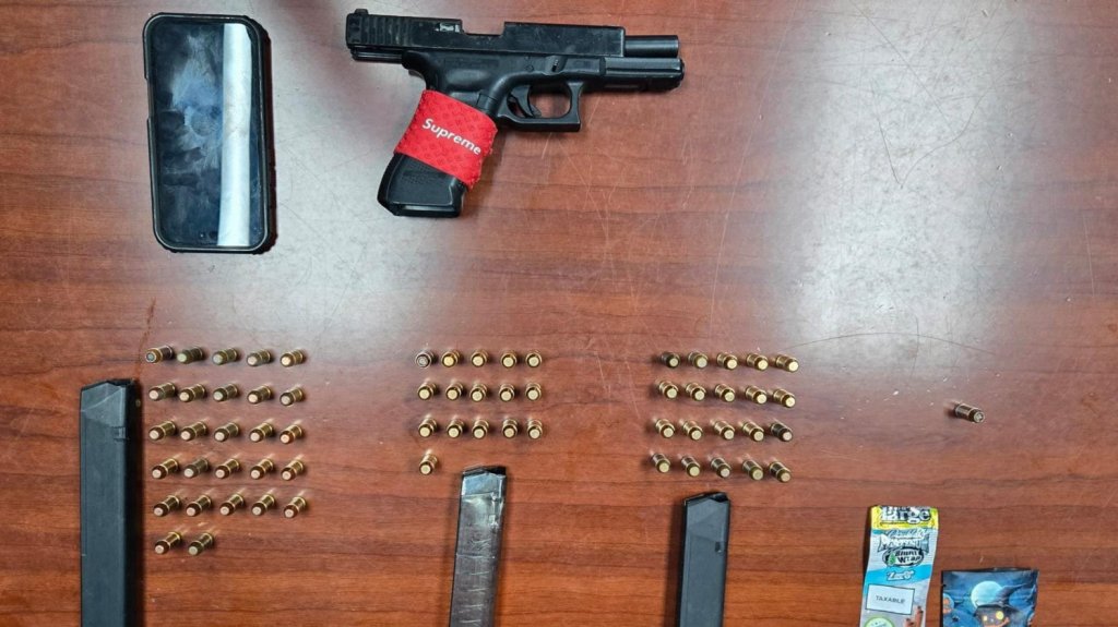 Por último, se arrestó a un hombre de 19 años en la avenida teniente Nelson Martínez en Bayamón, por violación a la Ley de Armas al cual se le ocupó una pistola marca Glock, modelo 22, calibre 40, la cual no registra y se encuentra con un aditamento para disparar de forma automática, 3 cargadores y 64 municiones calibre 40, una bolsa de marihuana y un vehículo Nissan, modelo Versa, del año 2018, color vino,  el cual posee gravamen de desaparecido.