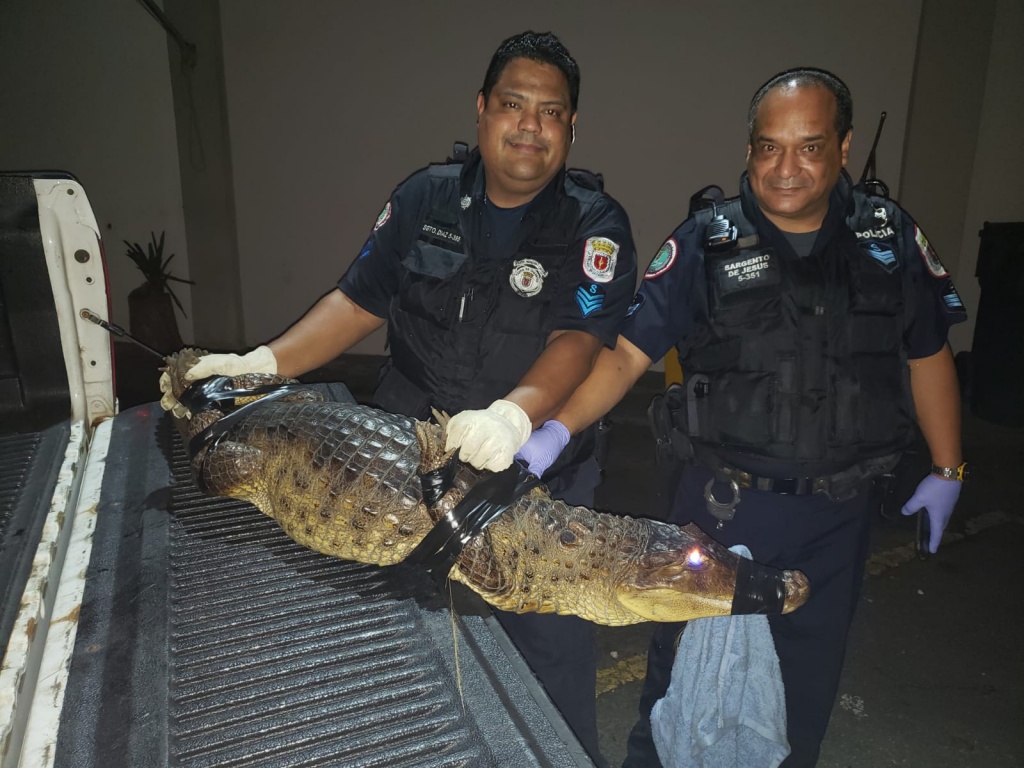 El pasado sábado Policías municipales d Carolina respondieron al llamado de varios conductores ya que un caimán se paseaba por la Baldorioty cerca del puente Teodoro Moscoso.