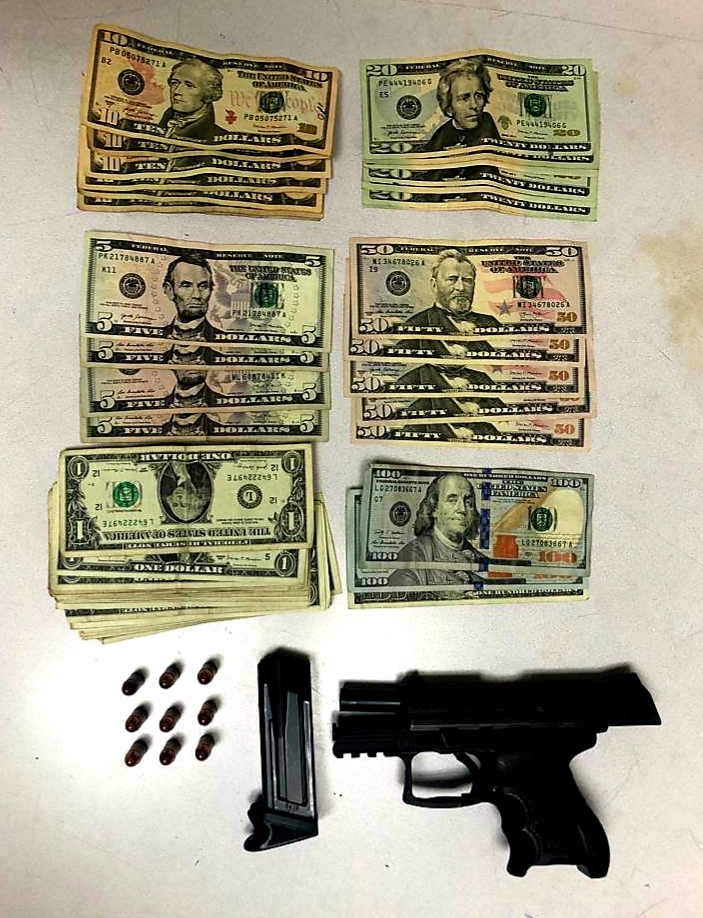 La tercera intervención, la llevaron a cabo en el sector La 15 de Aguadilla, siendo arrestado en el lugar, Christian Vale Feliciano, residente de esa población, al cual le ocuparon una pistola calibre 9 milímetros, 1 cargador, 9 municiones del citado calibre y $824.00 dólares en efectivo.