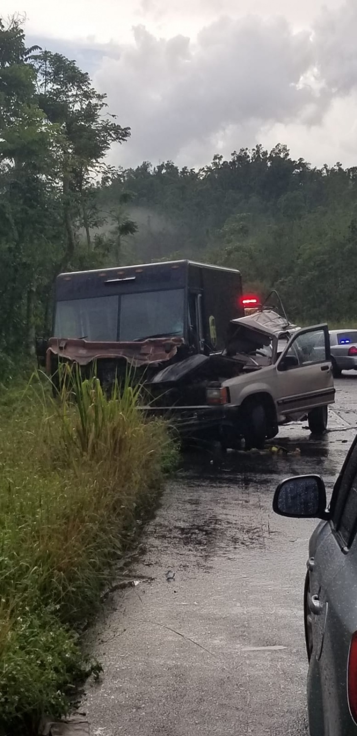 Según la información preliminar el accidente se produjo entre dos vehículos, una guagua Ford Explorer y una guagua de la compañía de entrega de paquetes de correo privado.