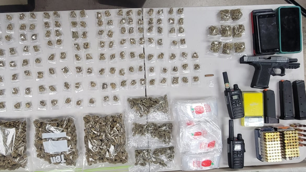 Finalmente, en el residencial Brisas de Campo Alegre, arrestaron a Dariel Pérez Sosa, de 28 años. Ocuparon una pistola, tres cargadores, 111 municiones, dos radios de comunicaciones, 181 dólares en efectivo, un cigarrillo de marihuana y 154 bolsas de marihuana de diferentes tamaños.