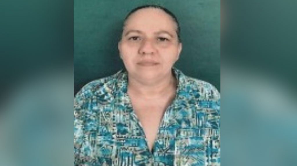 La mujer es de tez blanca, tiene cabello gris y ojos marrones, mide aproximadamente 5'03" y pesa alrededor de 170 libras. En el momento de su desaparición, vestía una camisa azul, pantalón largo y calzado negro con brillo.