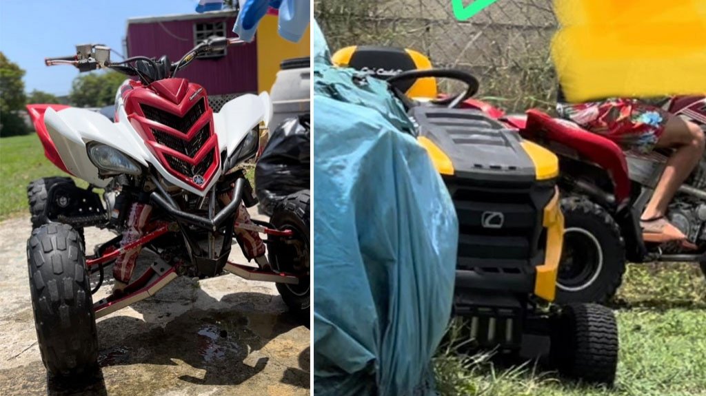 La querellante informó que un intruso brincó la verja frontal de su residencia, rompió el candado marca Toledo de su almacén, y se apropió ilegalmente de un Four Track, marca Yamaha, modelo Raptor, color rojo, blanco y gris, del año 2008, valorado en $6,500.00 dólares, y de un tractor marca Kohler, color anaranjado y negro, valorado en $2,399.00 dólares. Además, el invasor dañó la base del portón corredizo de rejas color blanco del lugar.