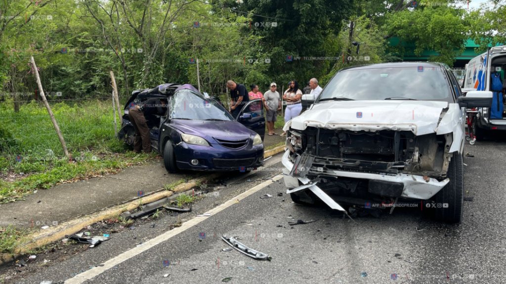 Se informó a través de radio frecuencia, sobre un choque de dos vehículos. Al verificar los agentes y en circunstancias que se encuentran bajo investigación la conductora de un vehículo, marca Mazda, quien viajaba con dos personas, impactó a otro auto y perdió el control del volante, chocando con un poste.