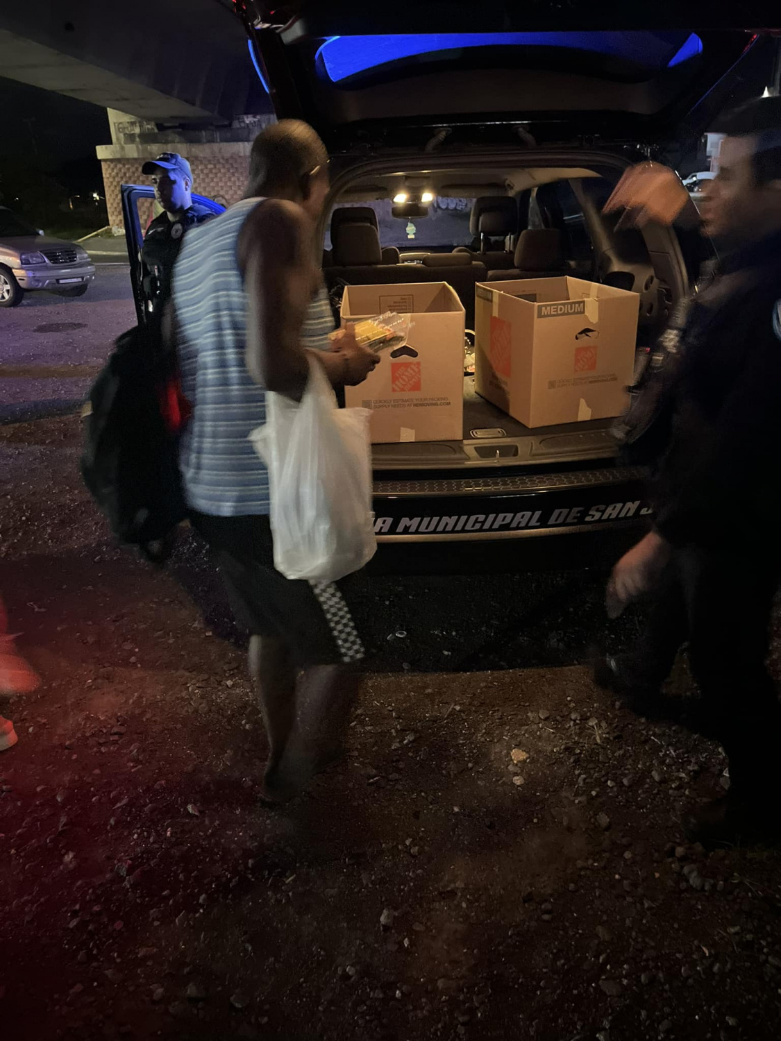 Por esa razón agentes del cuartel de Rio Piedras identificados como Marrero y Pacheco en coordinación con el teniente Juan Torres del instituto de educación y adiestramiento de la policía municipal de San Juan tomaron la iniciativa de llevar comida a las personas sin hogar.