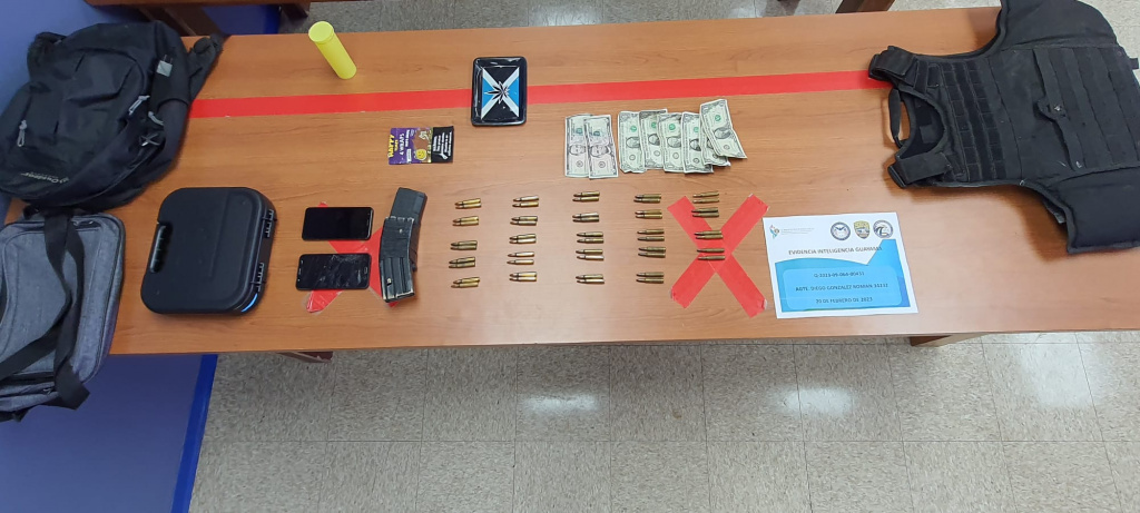 Agentes adscritos a la unidad de Arrestos Especiales en unión a la división de Homicidios y Drogas Guayama, llevaron a cabo un allanamiento en el barrio Vertero en Salinas, donde lograron el arresto de un hombre al que se le ocupó la siguiente evidencia: