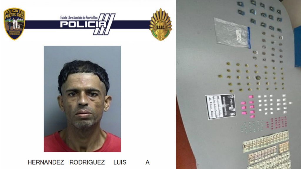 En el lugar, se arrestó a Luis A. Hernández Rodríguez de 48 años y residente de Ponce, a quien le ocuparon $445.00 en efectivo, ▪65 bolsas de cocaína, 45 bolsas de crack, 48 bolsas de marihuana y 72 decks de heroína.
