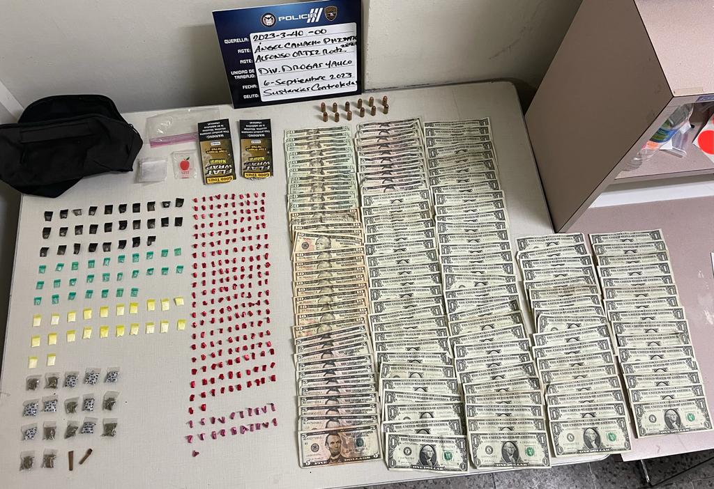 En Yauco, se arrestó a John Louis Oquendo Acosta de 23 años, confiscándosele un arsenal de sustancias controladas que incluyó crack, cocaína, marihuana y heroína, además de $529 en efectivo. Similar suerte corrió William Boria Rosa de 21 años en Carolina, a quien se le ocuparon drogas variadas y $515.05 en efectivo.