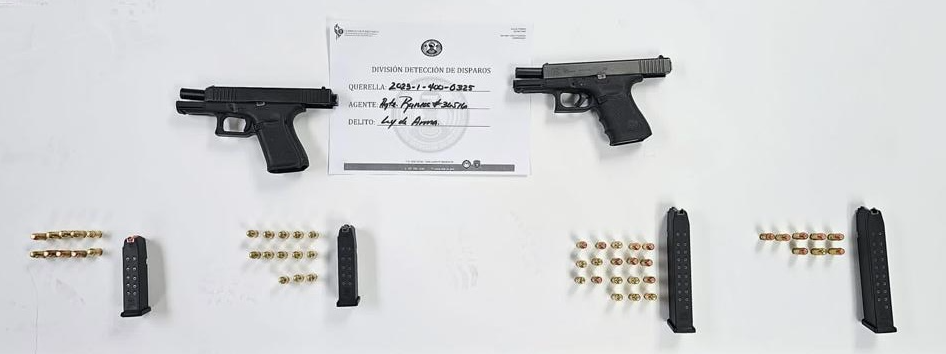En las primeras horas de la madrugada del martes, los agentes encontraron en la calle Ernesto Vigoreaux en Barrio Obrero una pistola Glock 23, calibre .40, alterada para disparar de manera automática, así como otra pistola Glock 23, calibre .40, con cuatro cargadores y 53 municiones del mismo calibre.
