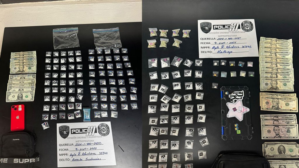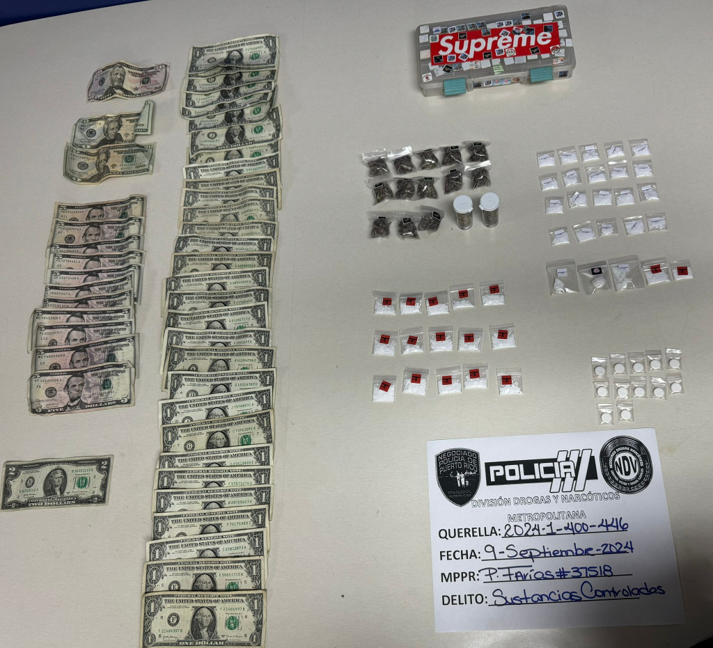 En la barriada Figueroa en Santurce, fueron arrestados Julio Antonio Cruz Nazario de 18 años, a quien le ocuparon 89 bolsas de cocaína y $125 en efectivo y José Armando Rodríguez de 21 años, a quien le ocuparon marihuana.  Además, se realizó el hallazgo de 12 bolsas de marihuana y $2 en efectivo.
