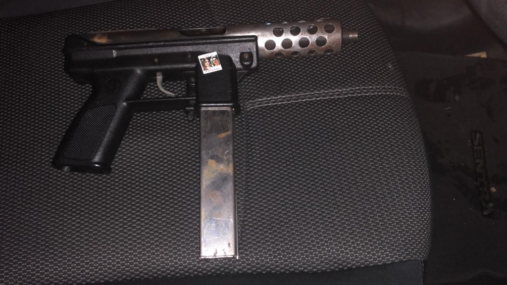 Además, la policía ocupo en el asiento del pasajero Metralleta Intratec Mod. TEC-9 Cal. 9mm con su peine. Al momento del registro se le ocupó 13 Pastilla Palitroque, Una (1) de Marihuana, una (1) de Cocaína.
