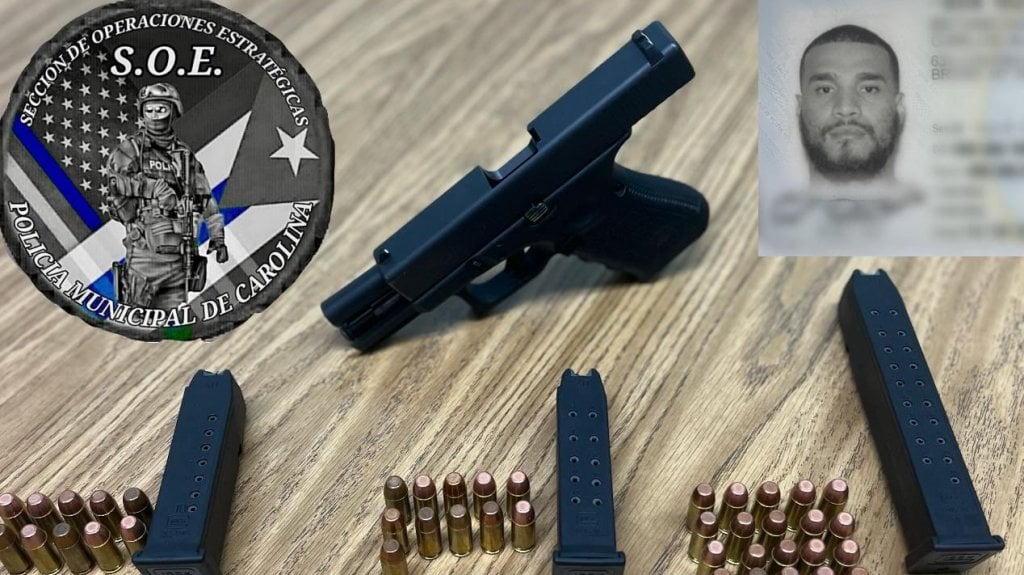 Agentes de la Sección de Operaciones Estratégicas de la Policía Municipal de Carolina, arrestaron a Carlos Alfredo Betancourt Morales, residente en San Juan, en la Ave. Paseo los Gigantes. El arresto se produjo por presunta violación a la Ley de Armas al serle ocupada una pistola Glock cargada para la cual no poseía licencia.