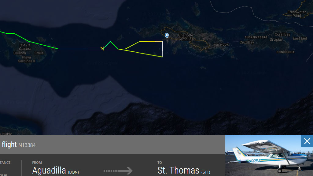 Una avioneta Cesna 172, matrícula n13384, desapareció mientras volaba en ruta a la isla de St. Thomas, según informó la Guardia Costera. La búsqueda se ha concentrado en el área entre la isla municipio de Culebra y St. Thomas, después de que la aeronave se perdiera del radar.