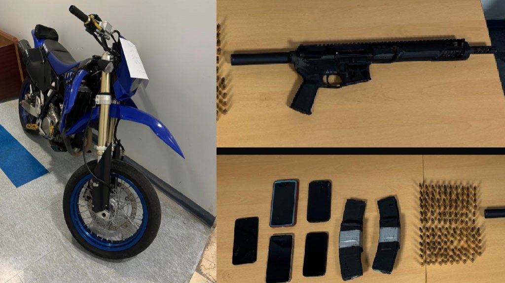 Durante el allanamiento, los agentes incautaron un rifle Firearms Springs TX modelo FDR-15 multi calibre, 119 municiones calibre 2.23, cuatro cargadores, cinco celulares y una motora Suzuki modelo DRZ 400, sin tablilla.