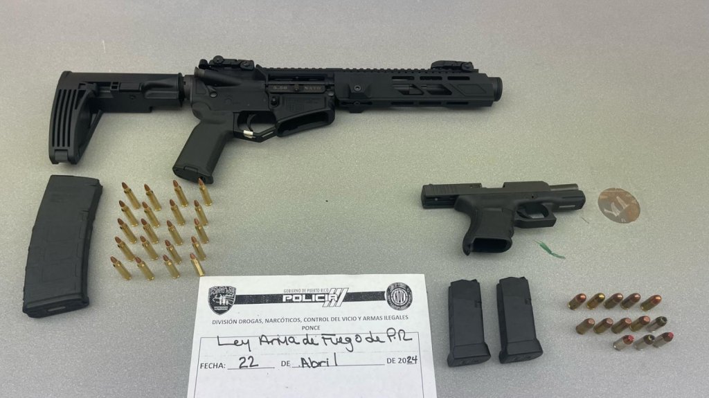 En el residencial Perla Del Caribe, se arrestó a Félix Torres Sánchez, de 29 años, confiscándole una pistola Glock 30 calibre .45, dos cargadores calibre .45, 3 balas calibre .45, un rifle marca Diamondpack, un cargador de rifle y 20 municiones calibre 2.23.