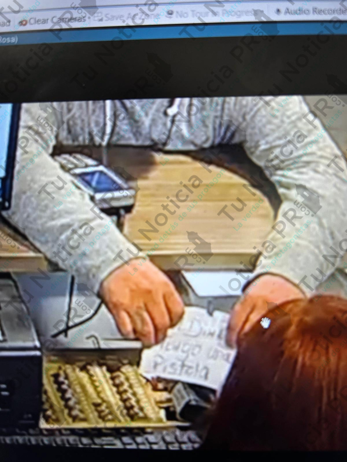 Si usted tiene información que ayude a dar con el paradero del sospechoso, puede comunicarse de manera confidencial al 787-782-9006, con la División de Robos a Bancos de la Policía de Puerto Rico, y el agente Abraham Lebrón Hernández.