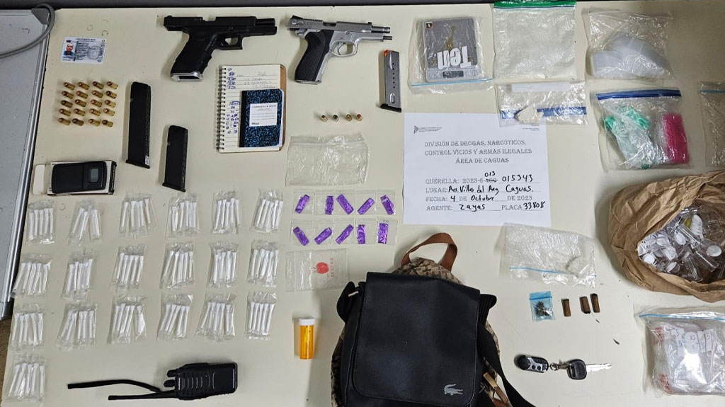 Eduardo Acevedo Torres de 33 años y Julyannie Martínez Rivera de 28 años, enfrentan graves cargos tras un allanamiento ejecutado en su residencia. Agentes de la División Drogas Caguas llevaron a cabo la operación en el residencial Villas del Rey, que resultó en el hallazgo de una serie de elementos ilegales, incluyendo armas de fuego y sustancias controladas.