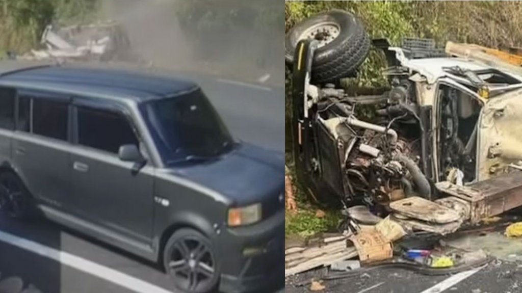 Cámara capta el momento en que camión se vuelca hoy en Naranjito