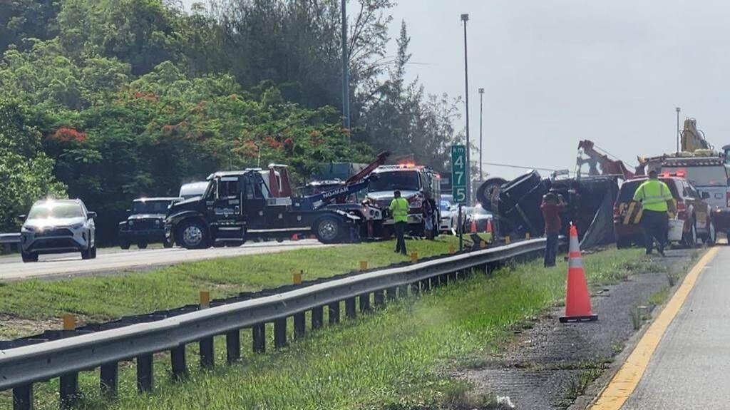 El tránsito en el Expreso 22, kilómetro 47.6 en dirección de San Juan hacia Manatí, fue reabierto esta mañana tras el vuelco de un camión que provocó el cierre temporal de los carriles.