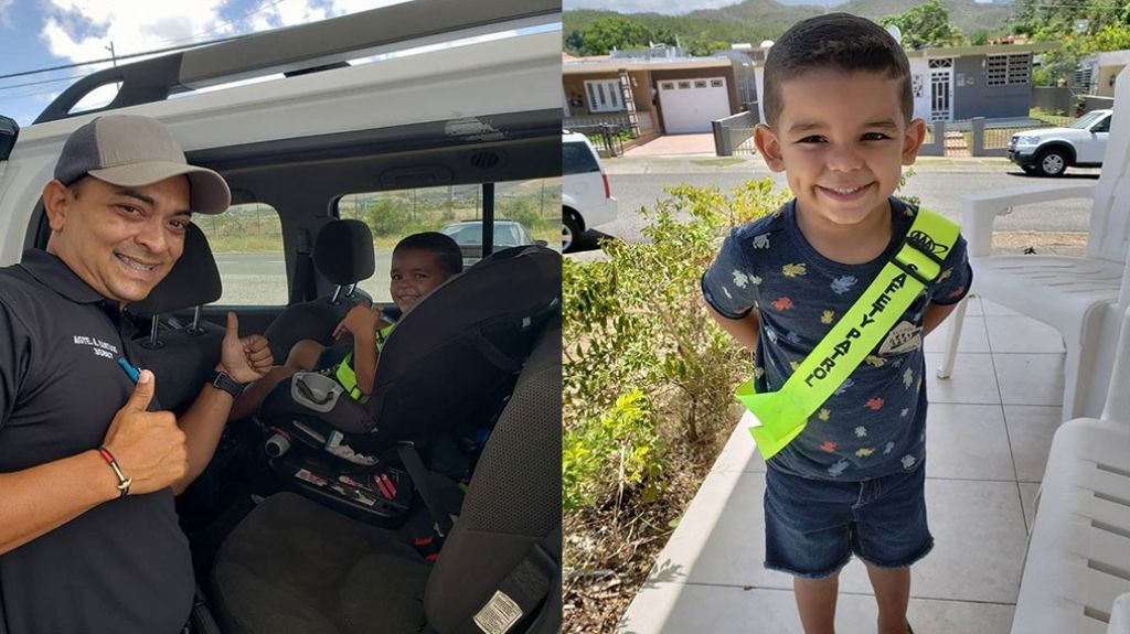 Video: Niño que admira a los policías, fue ascendido de rango en una gasolinera de Guayama