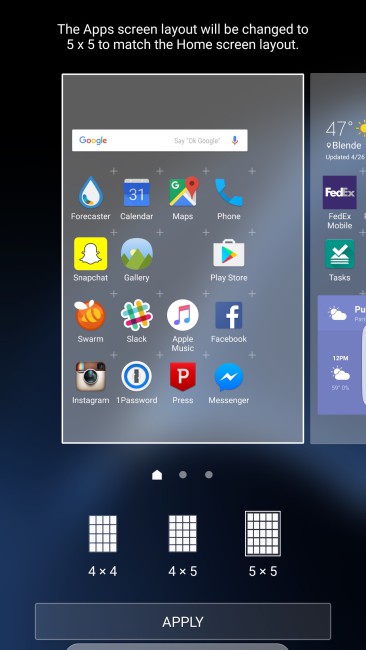 Una de las opciones más interesantes es poder modificar el tamaño de la rejilla donde se alojan las aplicaciones y widgets, pudiendo introducir más en el mismo espacio. Una vez más dejamos pulsado de forma prolongada sobre el escritorio y seleccionamos el icono de rejilla para elegir una medida de 4×4, 4×5 o 5×5.