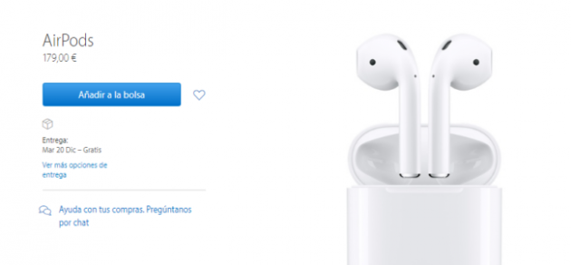 La entrega prevista para recibir los Apple AirPods es el 20 de diciembre, por lo que la compañía se cura en salud ante posibles retrasos y asegura la disponibilidad de los auriculares antes de la noche del 24 de diciembre.