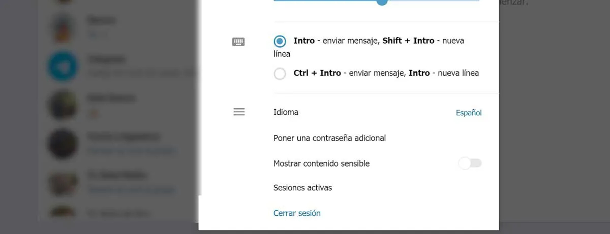 Otra de las cosas que tenemos que tener en cuenta es que los ajustes son mucho menos completos que en la versión móvil. Puedes gestionar notificaciones para que te avisen o no, para que estén activas o no en segundo plano. Y puedes gestionar algunas opciones de seguridad como poner contraseñas o mostrar las sesiones activas. Pero no podrás elegir quién puede añadirte a grupos o canales, por ejemplo, ni qué personas pueden ver tu nombre o tu fotografía de perfil. Permitirá lo básico e indispensable pero ten en cuenta que no busca ser un sustituto y que es una aplicación de mensajería para móviles aunque su versión web sea muy cómoda.
