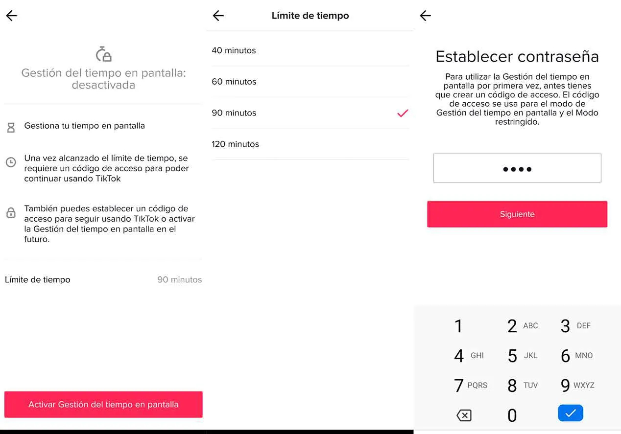 Si TikTok lo usan tus hijos en tu teléfono móvil porque son demasiado pequeños para tener su propio smartphone, puedes controlar el tiempo que usan la app desde los ajustes de desintoxicación digital de TikTOk. Puedes ir a este apartado y a Gestión del tiempo en pantalla para decidir cuánto tiempo al día pueden usar TikTok. Sin una contraseña no podrán usarlo más de este tiempo.