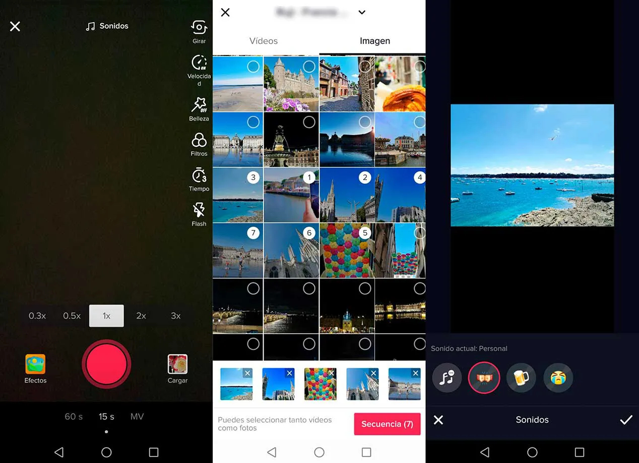 No solo tienes que bailar si no se te da bien sino que también puedes hacer vídeos con diapositivas o fotos que tengas en el teléfono móvil. Hay un máximo de 35 imágenes que puedes subir de la galería para un único vídeo y no necesitarás tener ninguna otra app de edición de vídeo, bastará con hacerlo desde TikTok.