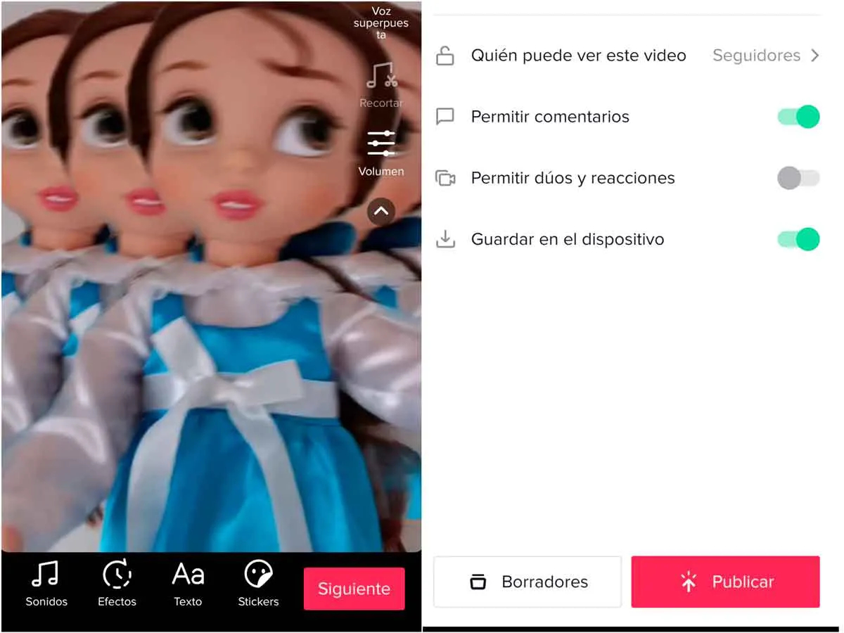 Como decimos, los audios se fusionarán de forma simultánea aunque podrás elegir si quieres que se escuche más o menos el tuyo o el otro a través de un control desplegable en la app. Como en los demás vídeos de TikTok podrás añadir efectos, filtros, control de volumen y todo tipo de opciones.