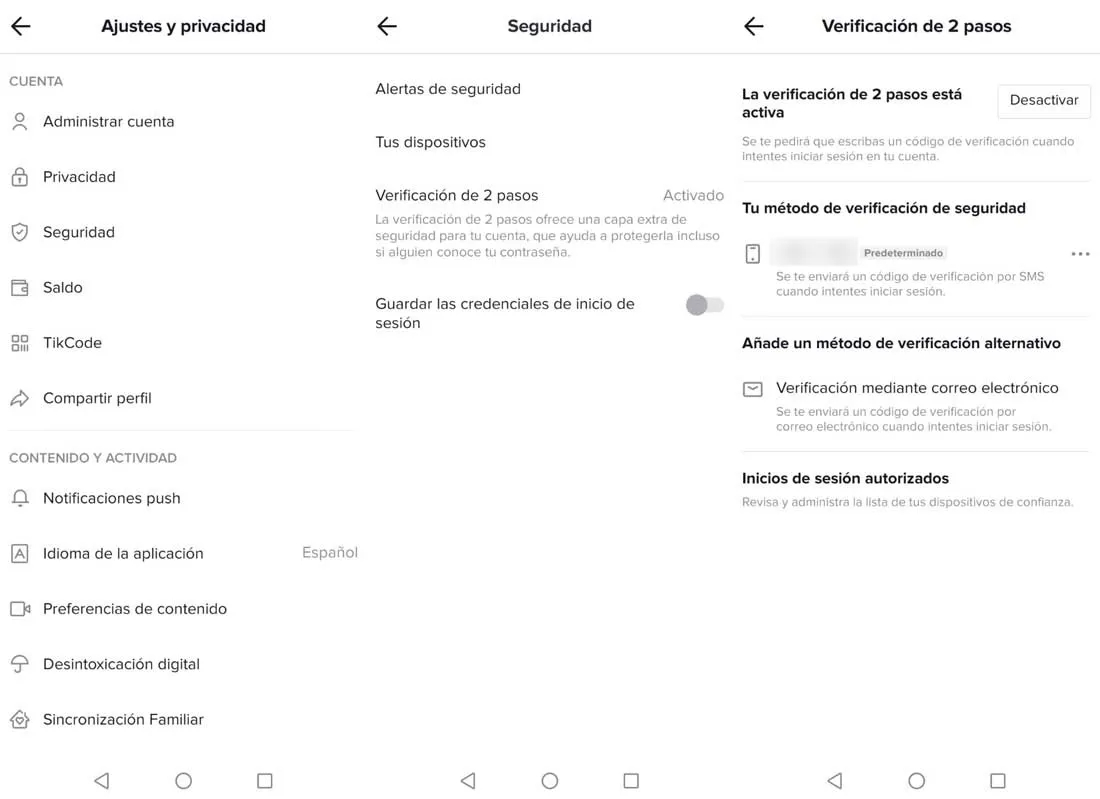Para evitar hackeos, la verificación en dos pasos de TikTok nos ayudará a que no roben nuestra cuenta salvo que alguien tenga acceso físico a tu teléfono móvil, lo que será complicado si no te lo roban o no lo prestas a alguien. Si la app detecta que alguien ha iniciado sesión desde un móvil o dispositivo no conocido te mandará un código de seguridad que habrás recibido por SMS.