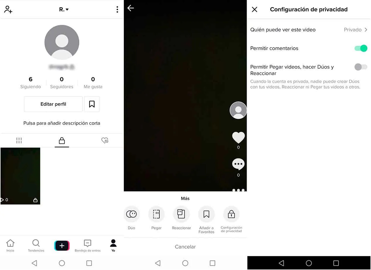 También pueden hacer duos o reacciones con tus videos salvo que lo desactives desde los ajustes. Siempre y cuando tengas la aplicación pública podrás desactivarlo, si la tienes privada no hará falta porque por defecto nadie podrá reaccionar ni hacer duos contigo. Para desactivarlo: