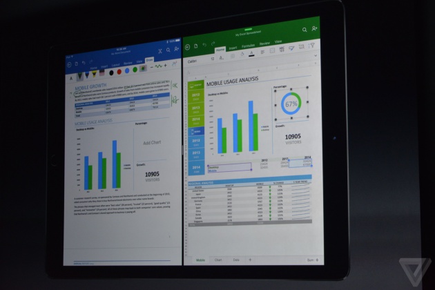 Para Microsoft, la historia fue otra. Estos mostraron el nuevo suite de Office para el iPad pero la versión del iPad Pro que cuenta con funciones de dibujos. Esta aparición de Microsoft en una tarima de un keynote de Apple, marca el fin a muchos años sin que Microsoft presentara un producto para la compañía.