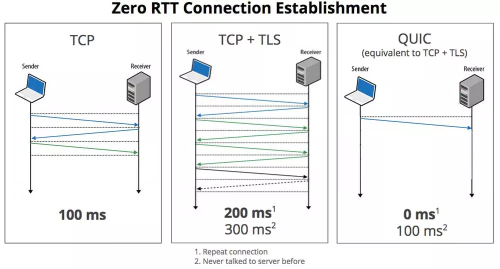 En el caso de QUIC, el protocolo está diseñado alrededor de UDP, ofreciendo un mecanismo mejorado para la recuperación de datos que se hayan podido perder por el camino. Las cifras de rendimiento actuales no las conocemos, pero en 2017 Google publicó una investigación en la que afirmaban que QUIC permitía cargar las búsquedas en Google un 8% más rápido en PC y un 4% en móviles, y que el buffering en YouTube tardaba un 18% menos en ordenadores y un 15% menos en móviles.