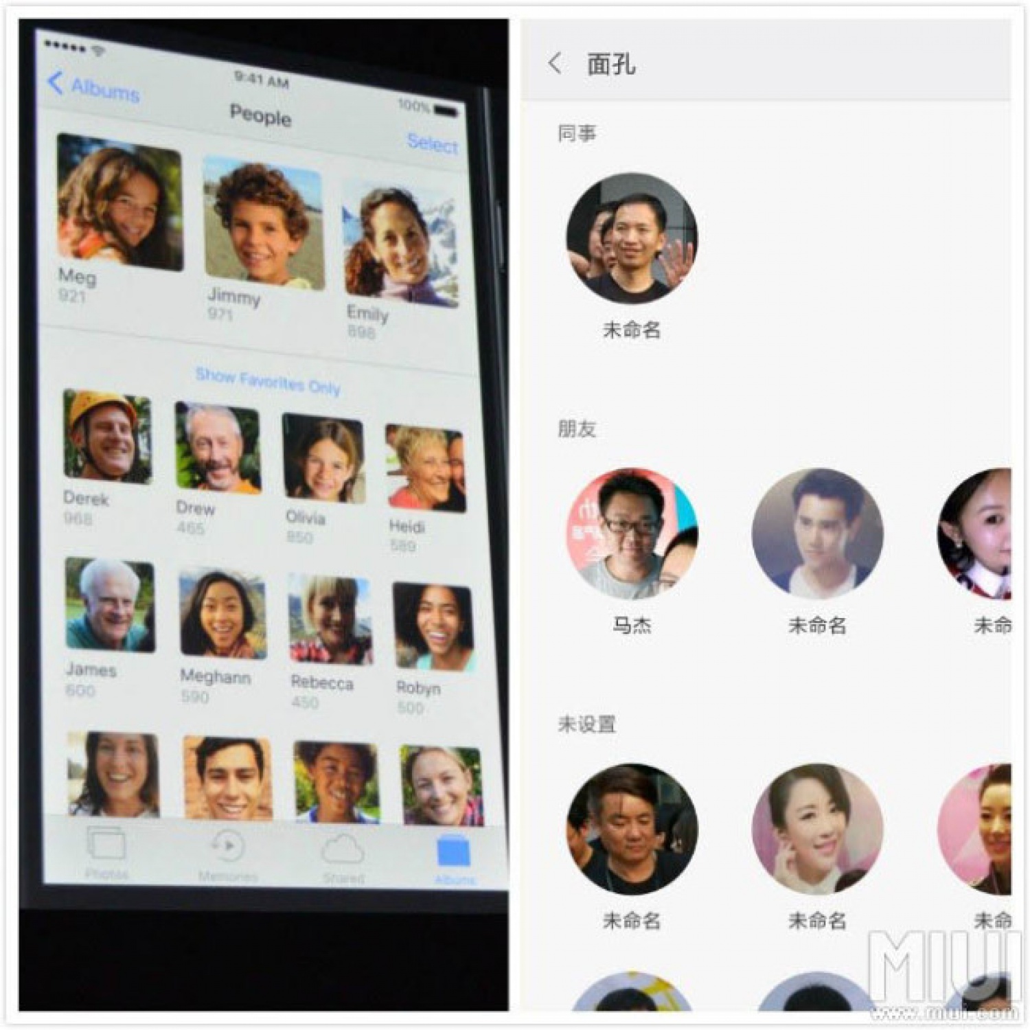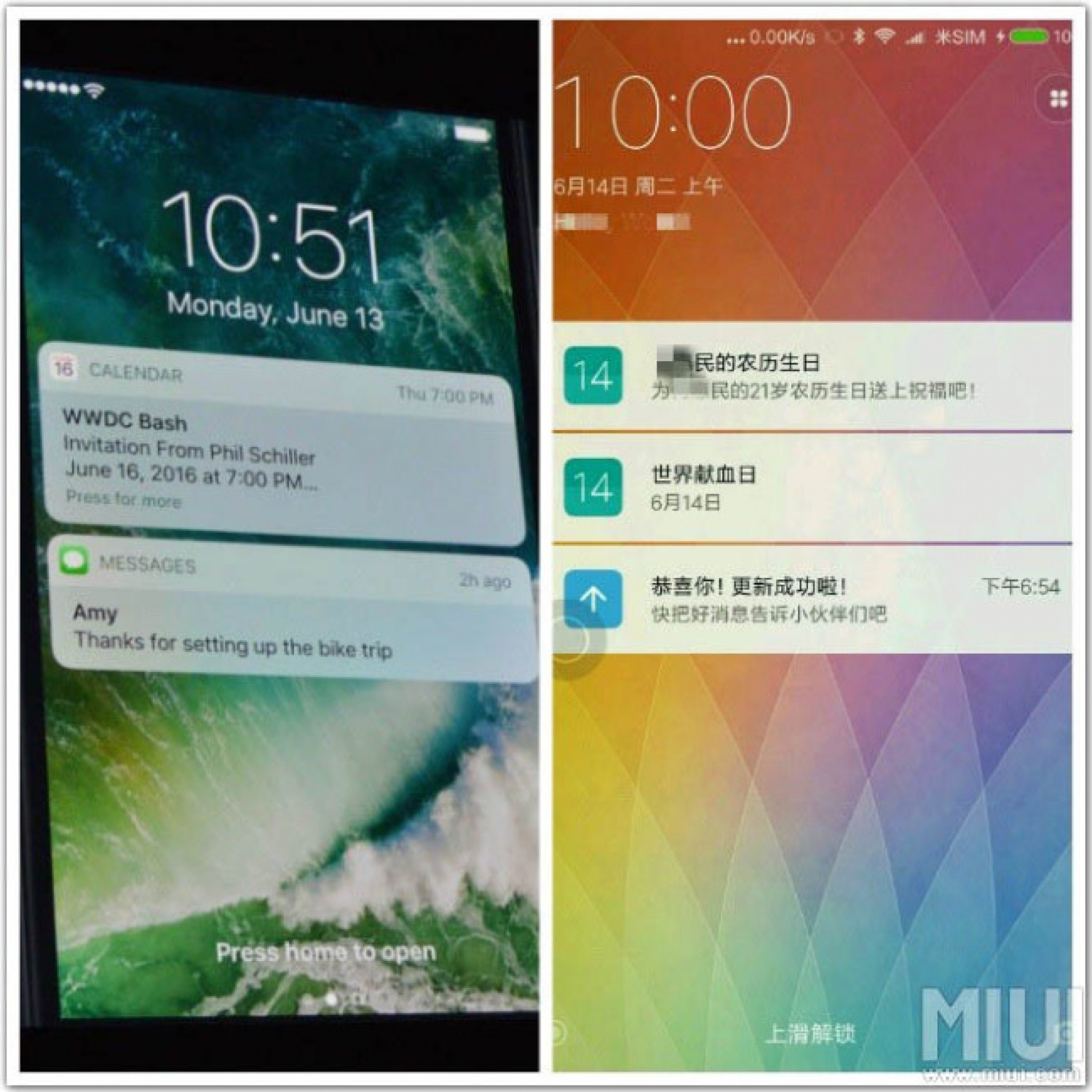 La primera de estas acusaciones tiene que ver con iOS 10, la nueva versión del sistema operativo de los iPhone que no ha dejado indiferente a nadie. Esta se basa en que muchos usuarios están acusando a Apple de inspirarse en la ROM MIUI de Xiaomi para introducir muchas de las novedades del sistema. Estas tienen que ver por ejemplo con los widgets que los de Cupertino han añadido a la pantalla de bloqueo, que ya ofrecía MIUI desde su versión 7. Otra de las facetas objeto de acusación son el reconocimiento facial en las fotografías del carrete, para agruparlas en base a este tipo de reconocimiento, algo que también presentó como novedad MIUI 7.