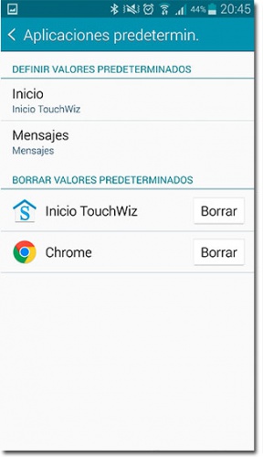 Ahora bien, ¿y si tenemos algunas más y no queremos ir una por una? Algunos terminales tienen un apartado en los Ajustes llamado Aplicaciones Predeterminadas. En ella aparecen todas las aplicaciones que tienen valores establecidos por defecto, por lo que lo único que debemos hacer es seleccionar Borrar en cada una de ellas y ya haremos acabado.