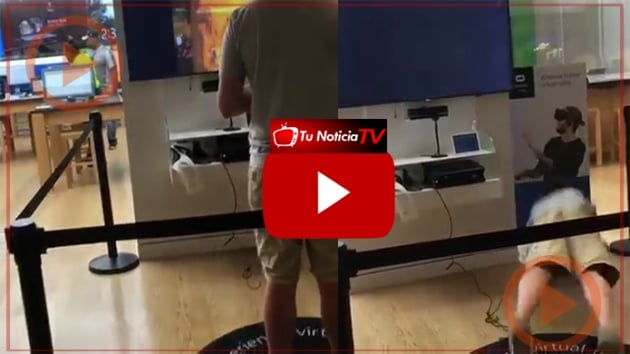 ¡El peligro de la Realidad Virtual! Quedo plasmado en un video cuando un joven decidió probar cómo funcionaba el sistema en u centro comercial de los Estados Unidos.