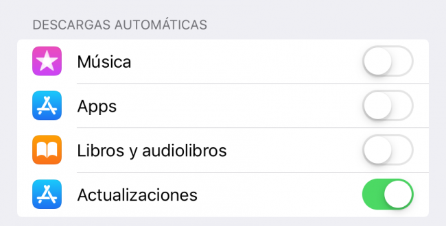 Acto seguido tendremos que deshabilitar las actualizaciones automáticas de iTunes y App Store. Si las tenemos marcadas, y tenemos muchas apps descargadas, podemos sufrir una drástica disminución de los datos en nuestra tarifa casi sin darnos cuenta.
