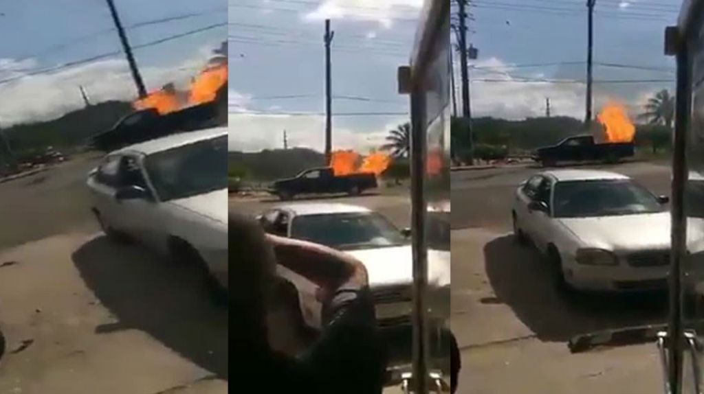 En video momento en que un cilindro de Gas explota en una guagua en Lares