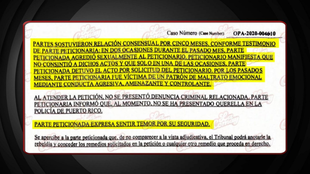 La Orden de protección expedida por el tribunal de San Juan en contra de Pedro Julio Serrano, especifica que este obligo a su pareja a tener relaciones sexuales.