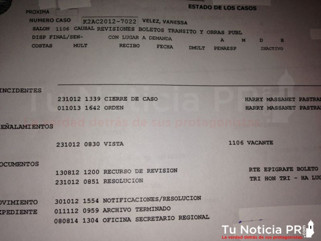 La Honorable Jueza Sonia I.  Vélez Colon directora administrativa de los tribunales, confirmo en el 2014 en exclusiva a Tu Noticia PR, que si existia una investigación por posible fraude en el proceso de solicitudes de recursos de revisión de boletos expedidos por la policía.