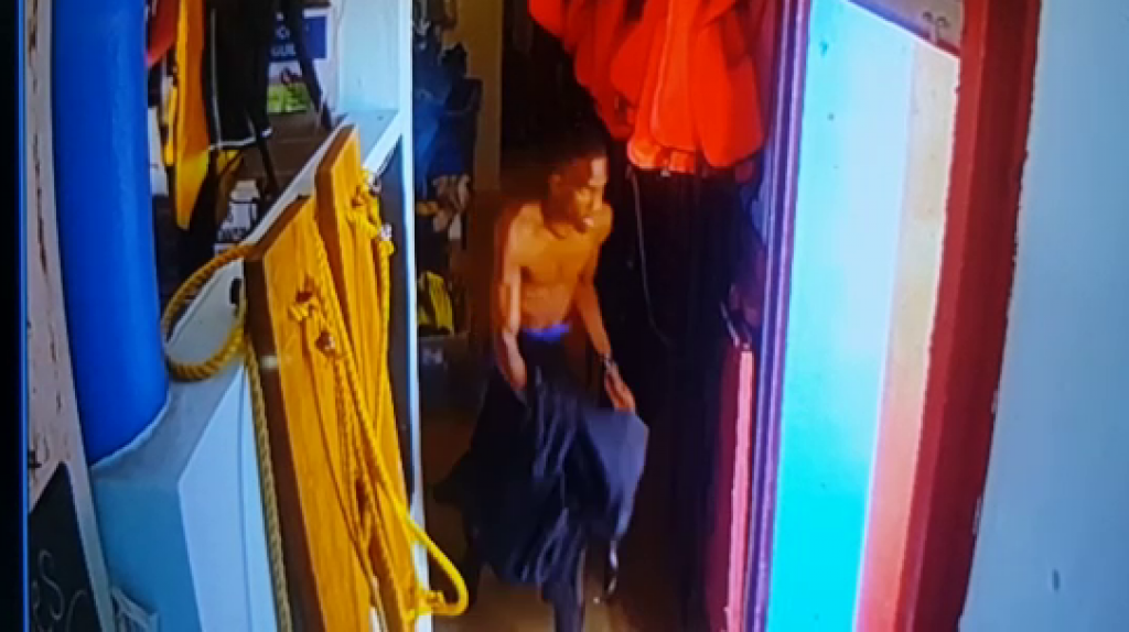 En video un "buzo" con un arpón, asalta una tienda en la playa Escambrón de San Juan